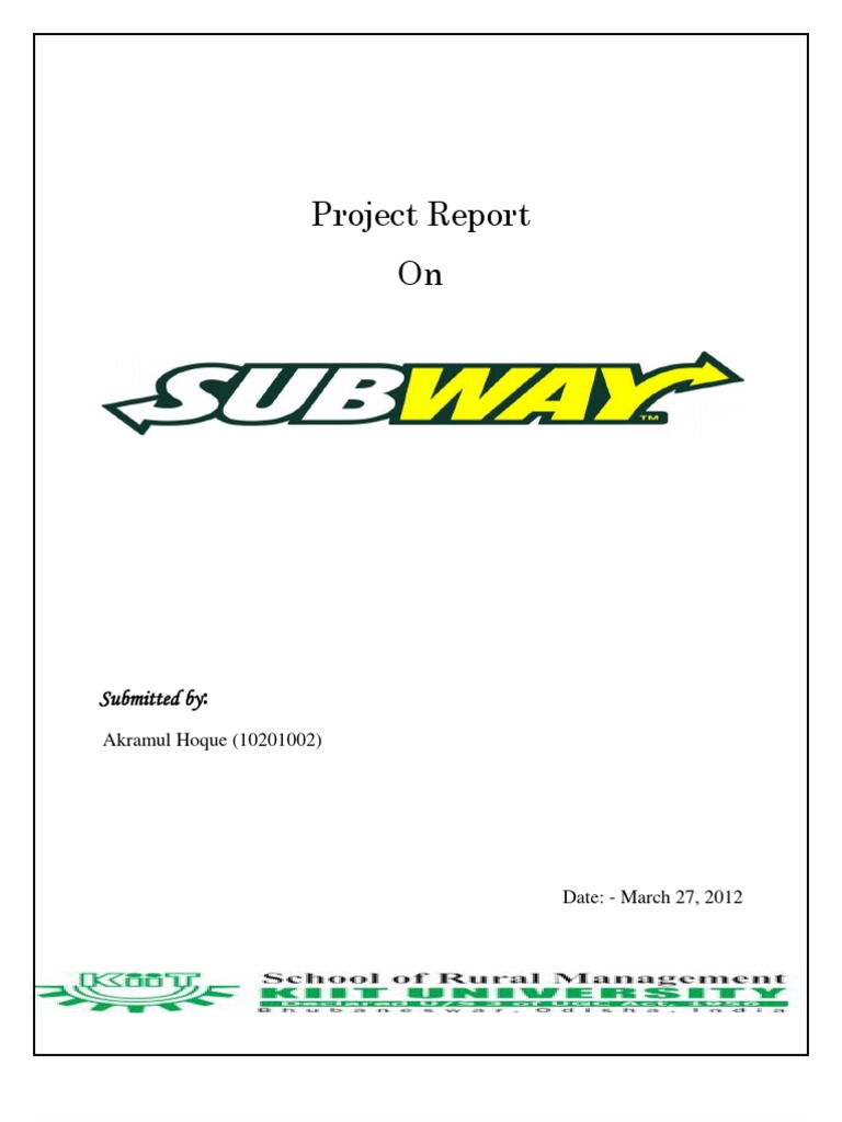 1 Expansion of SUBWAY in China Research Report MKT 4604 Marketing in China ESTHER Lam Ting RICKY Chan Chi Fung DOROTHY Xu Hui KEVIN Xu Shen ... Read Here